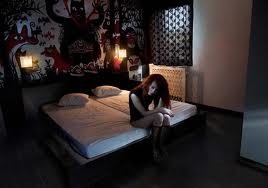 No jak je už známo , tak emaři mají rádi spíše ty tmavé barvy , takže se to musí tolerovat , tento pokoj mi nepříjde nějak extra výrazný ,, možná jenom ta zed za postelí ,, Me osobně by to pěkně " deptalo " :) ...Ale pro emaře by toto mohlo být vysněný ráj !!! :) Takže asik taky " oukej " :)
